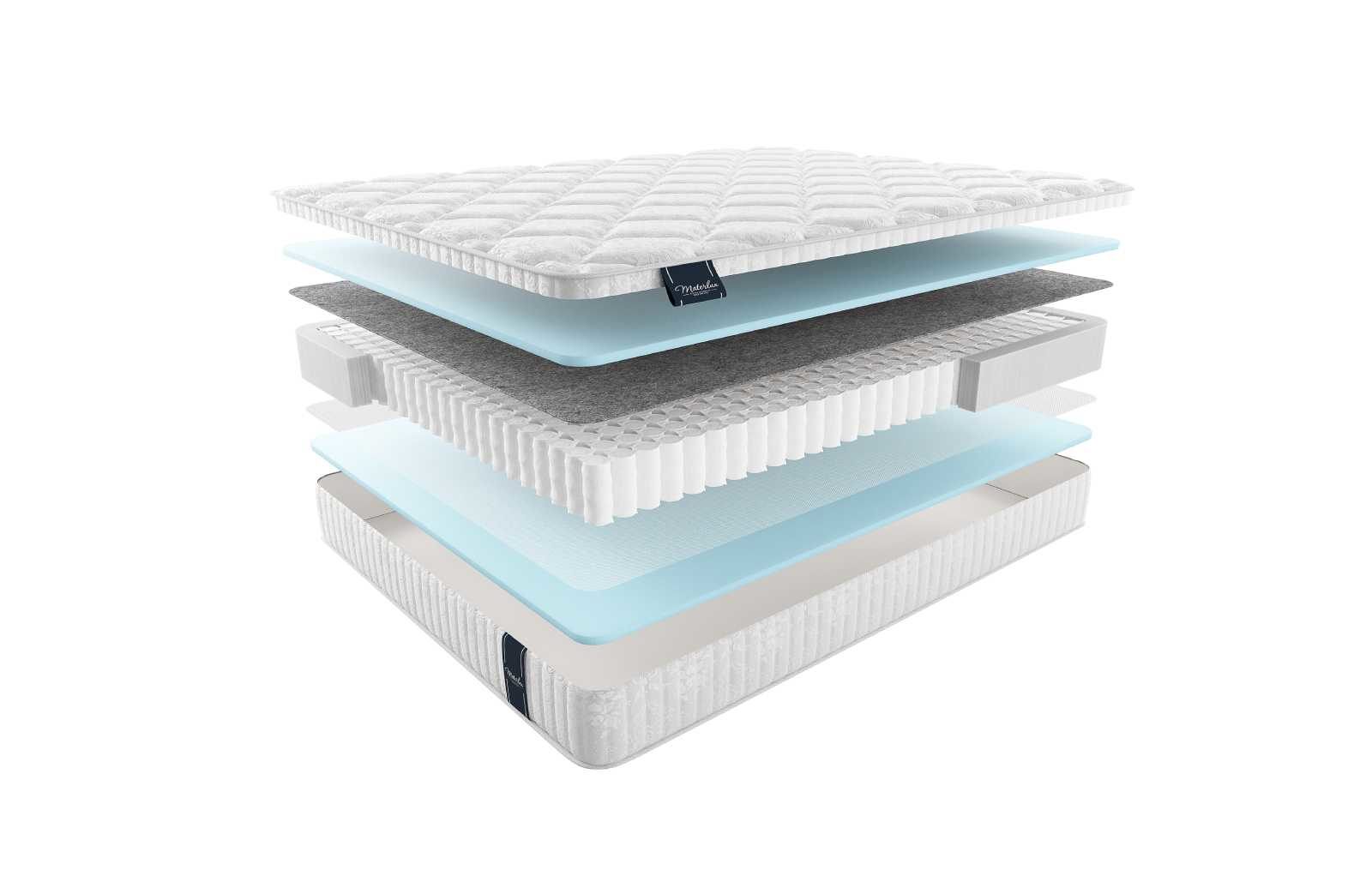 Матрас снабжен независимым пружинным блоком (520 пружин на спальное место), который адаптируется к смене положения тела во время отдыха. Независимые пружины отлично поддерживают спящего человека, выдерживают даже значительную нагрузку и создают правильную ортопедическую поддержку.