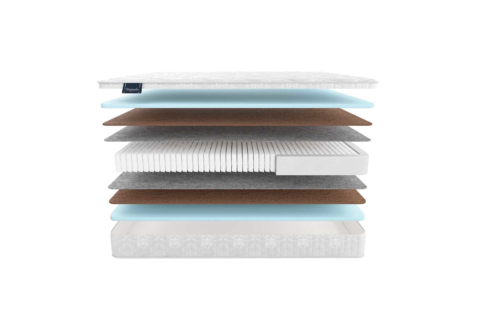 Ещё один слой, который присутствует с каждой из сторон – это койра кокоса. Жёсткий натуральный материал великолепно удерживает фигуру. Он не позволяет телу сильно проваливаться в текстуру матраса, а напротив передаёт гармоничную поддержку и опору для всех естественных изгибов спины.