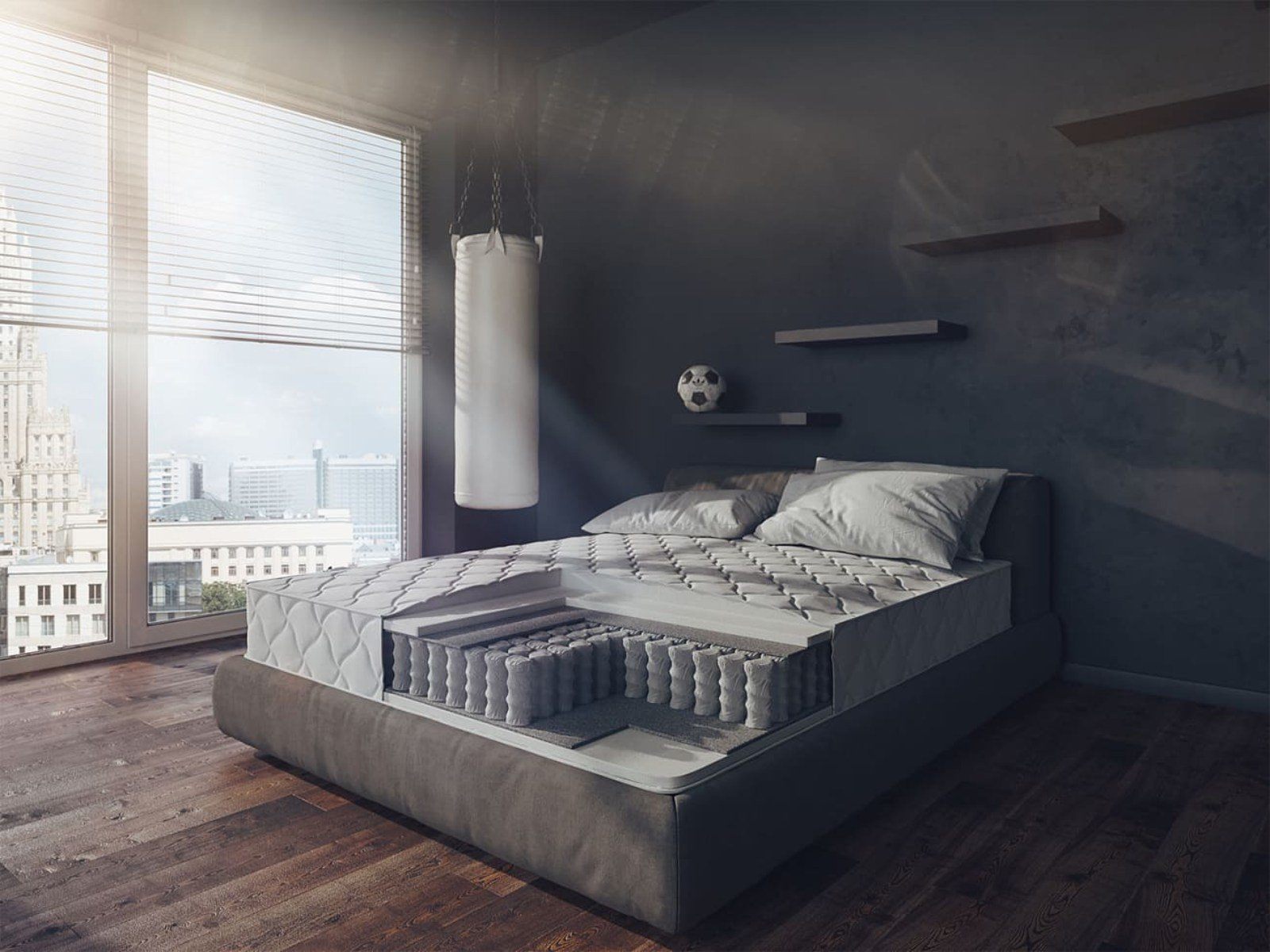 Ортопедический матрас Double H2 с пенополиуретаном и блоком независимых пружин в основе.