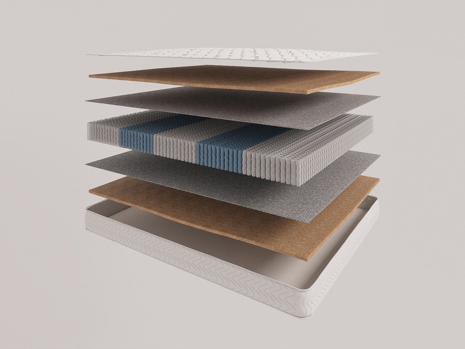 Основой матраса является блок независимых пружин "Мультипакет" в котором 1020 пружин на спальное место (510 пружин на 1 м2). Располагая пружинки в шахматном порядке производитель добивается максимальной концентрации пружинок на 1 спальное место, так как при таком размещении их умещается в 1,5 раза больше на равную площадь по сравнению с обычным стандартным расположением пружин. Изоляционный слой войлока защищает пружины и кокос от повреждений, помогает сохранить тепло и обеспечивает влагоизоляцию.