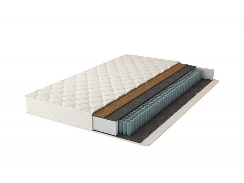 Недорогой разносторонний матрас Norma с независимым пружинным блоком в основе. Изолированные друг от друга пружины равномерно распределяют нагрузку по поверхности, что способствует сохранению анатомического положения позвоночника.Также такой пружинный блок обеспечивает оптимальную упругость и повышенную износостойкость матраса. В качестве наполнителей используется термовойлок и кокосовая койра (с одной стороны).