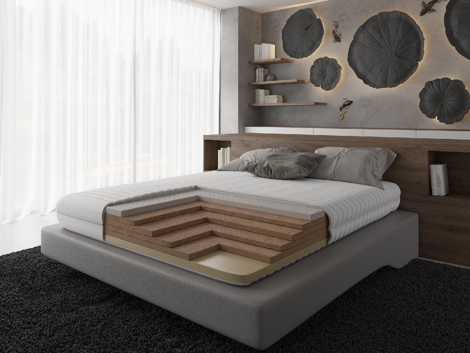 Натуральный латекс применяется в самых качественных ортопедических матрасах. Оптимальная упругость и эластичность позволяют латексу адаптироваться к анатомическим особенностям тела. Слой из кокосовой плиты служит гигиенической защитой спального места, поддерживает сухость внутри матраса и препятствует появлению неприятных запахов. Memorix, благодаря памяти формы, снимает нагрузку с мышц спины и шеи, служит профилактикой сосудистых изменений и обеспечивает высокий анатомический эффект.