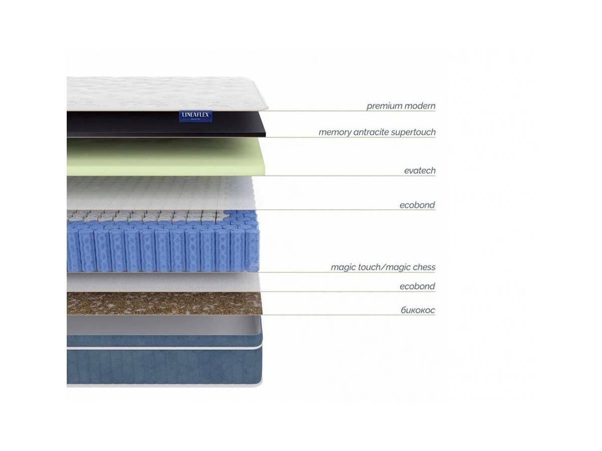 Magic Touch – инновационный пружинный блок с пружиной Soft Touch c микромассажным равномерным распределением нагрузки. Усилен по периметру пружинами Magic Chess (500 пружин на спальное место), армированный по системе Ecobond.
