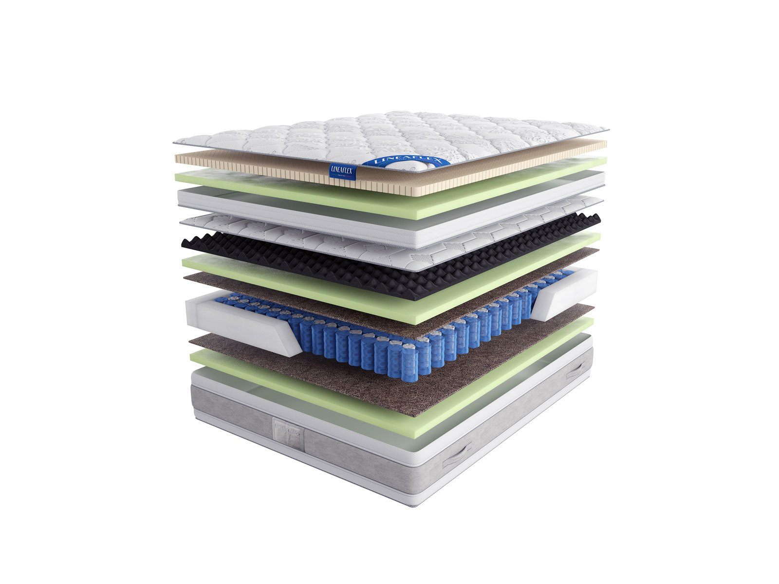 Изделие относится к премиум-сегменту, поэтому особое внимание производителя уделено материалам, на которых базируется матрас. Модель не имеет весового ограничения и свободно выдерживает нагрузку – 200 кг на спальное место.