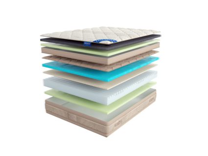 Модель базируется на четырёх видах пористых пен различной природы. Каждый слой несёт определённый функционал и отличительные особенности. Использование пен обусловлено их пропускной способностью. Благодаря пористой структуре материалы великолепно пропускают воздух и «дышат». По этой причине матрас, обеспеченный таким наполнением, не будет собирать посторонние запахи, пыль и остатки влаги.