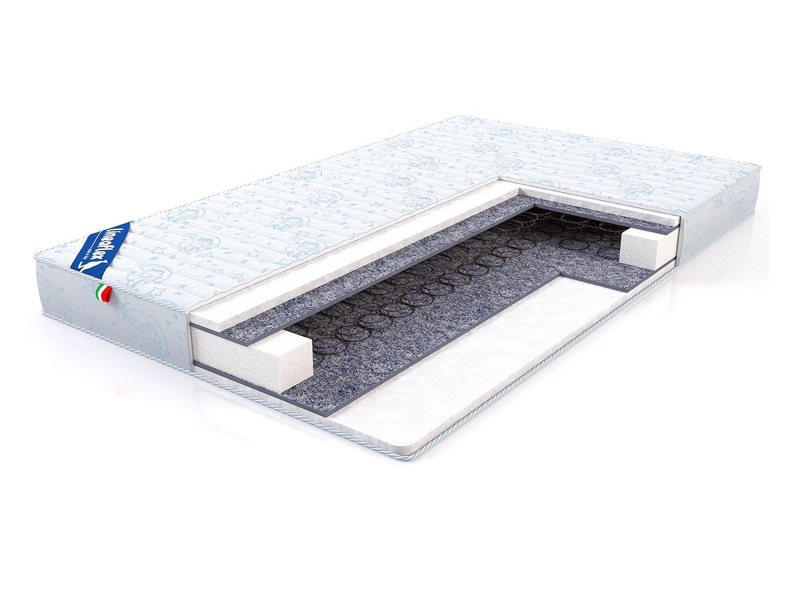 Основанием матраса служит пружинный блок системы «Боннель». Механизм состоит из специальных 5-витковых пружин, которые связываются особым видом сцепки между собой. Квадратный метр системы обычно содержит не менее 120 пружин, что позволяет оказывать хорошую поддержку для корпуса и спины ребёнка. «Боннель» относится к числу зависимых пружинных блоков и выдерживает весовую нагрузку в пределах 50 кг на спальное место.