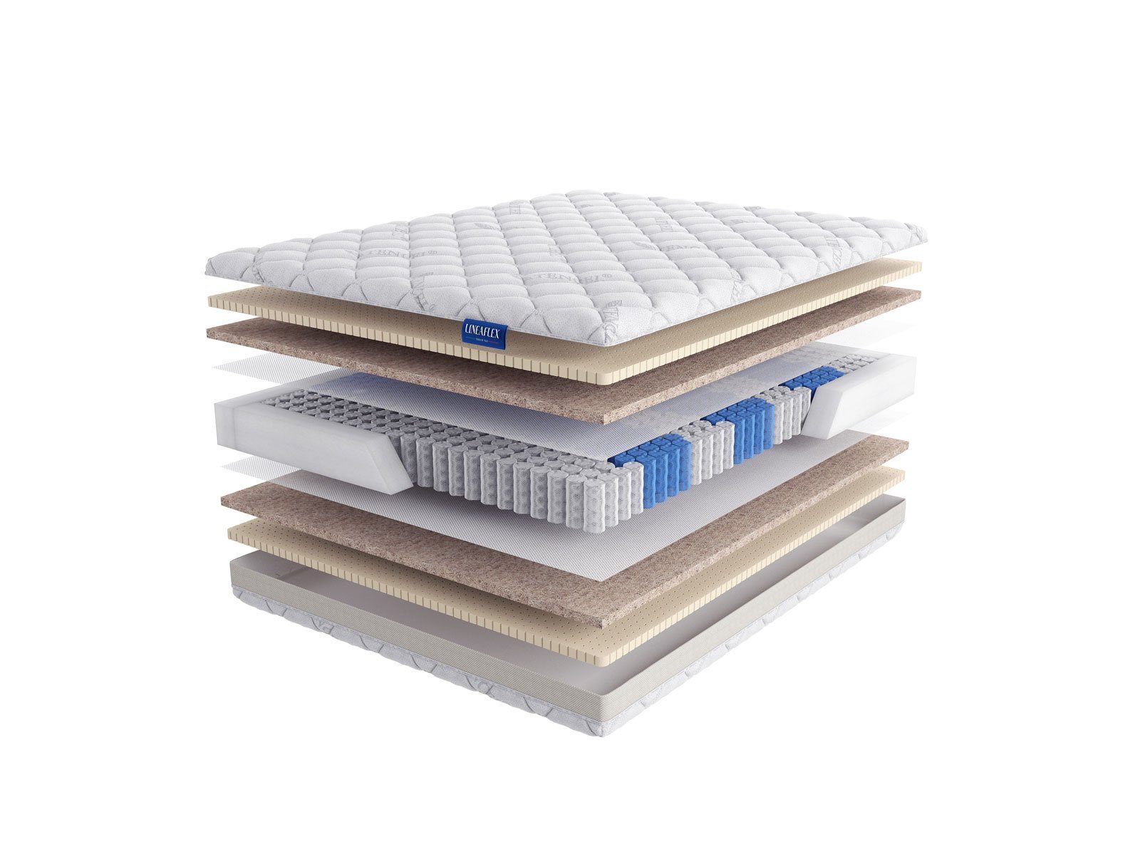 Сердцем спальной принадлежности и его главным несущим слоем выступает 7-зональный пружинный блок. Поскольку все спирали здесь установлены независимо, то это позволяет очень точно адаптировать поверхность под вес и анатомию конкретного человека. Кроме того, диаметр проволоки в пружинах различен, что делит элементы на более жёсткие и более мягкие. Разноплотные спирали устанавливаются в 7 областях матраса с учётом физиологии тела для лучшей поддерживающей функции.
