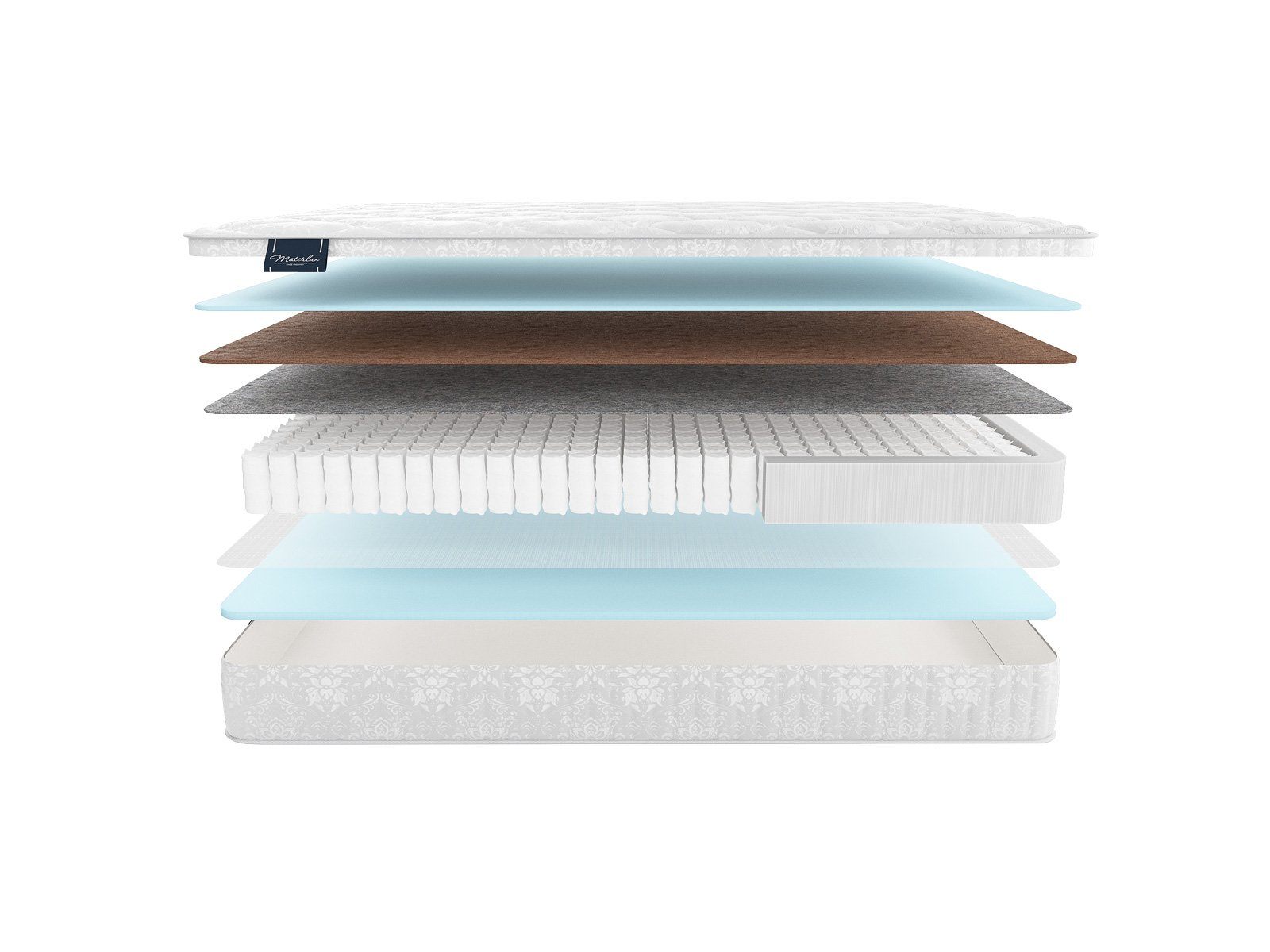 Матрас снабжен независимым пружинным блоком (520 пружин на спальное место), который адаптируется к смене положения тела во время отдыха. Независимые пружины отлично поддерживают спящего человека, выдерживают даже значительную нагрузку и создают правильную ортопедическую поддержку.