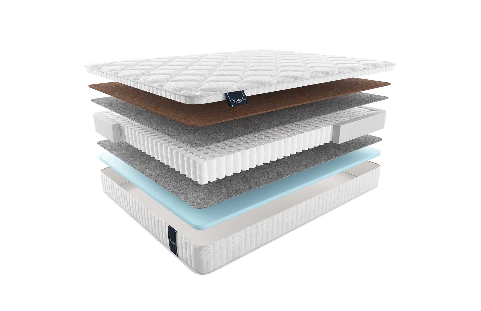 Что касается наполнителей, то это прекрасно зарекомендовавшие себя материалы. Койра кокоса – исключительно натуральное полотно, которое изготавливается из растительного сырья. Экологически чистый материал, обладающий выраженной жёсткость и гибкостью. Данная совокупность наделяет слой ярко выраженным ортопедическим качеством, которое отвечает за гармоничную поддержку спины.
