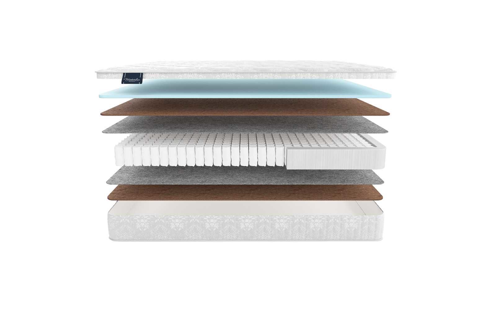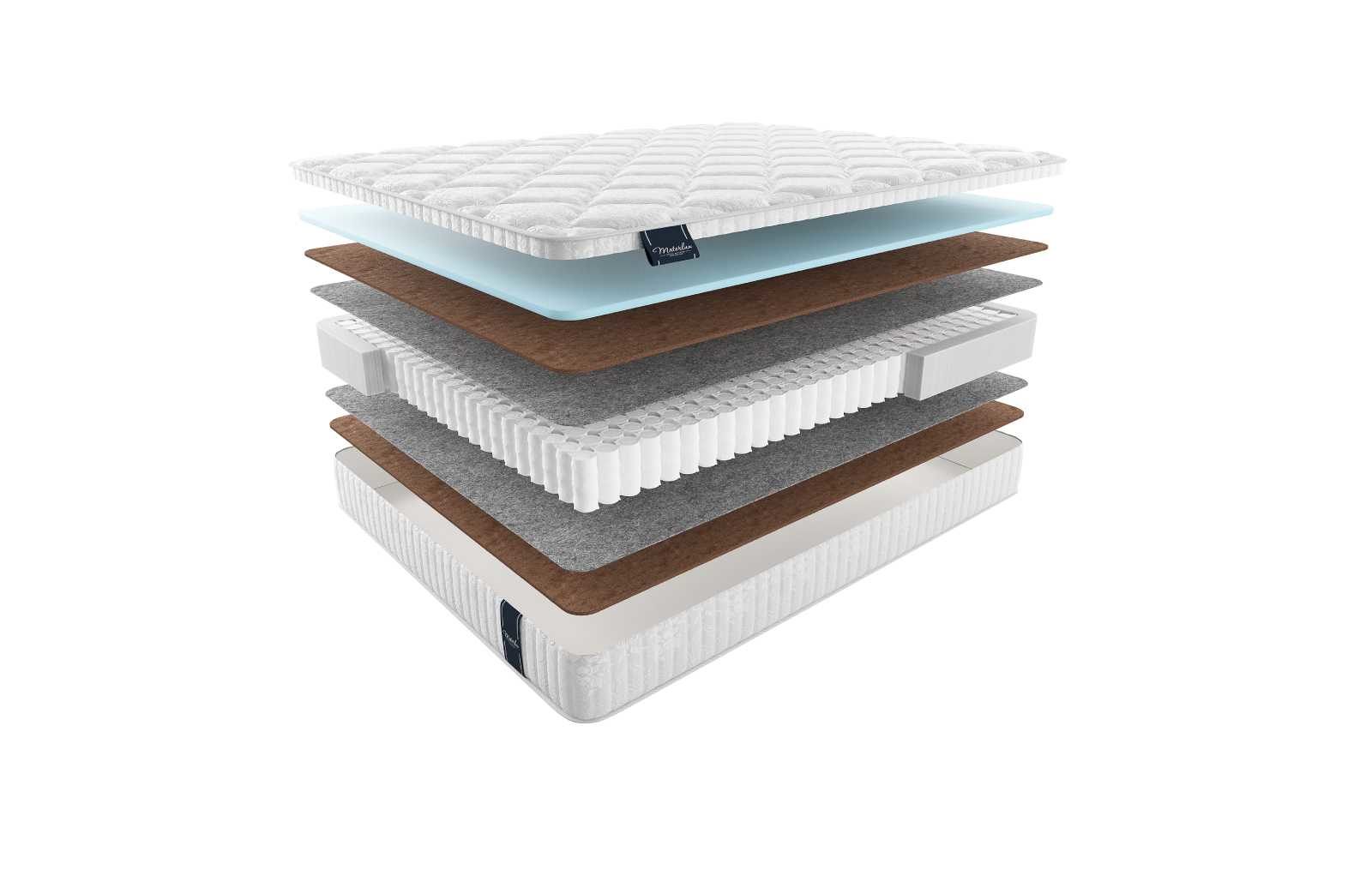 Основным ортопедическим элементом матраса выступают независимые пружины. Их плотность составляет не менее 256 шт. на квадратный метр. Большая частота подвижных элементов даёт не только выраженную поддержку, но и высокоточную подстройку матраса под особенности фигуры спящего. В частности, модель будет точно повторять S-образный изгиб спины, что крайне важно для здоровья осанки.