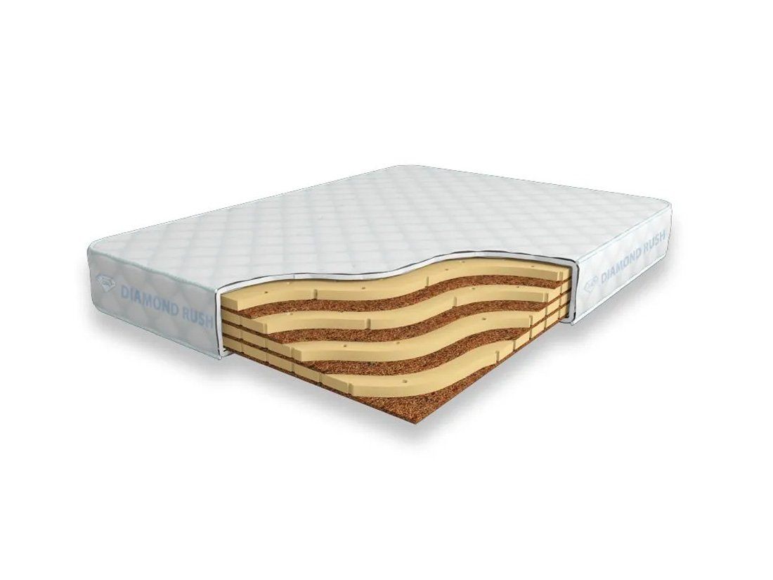 Матрас Diamond Rush Mix Cocos 16 DR является беспружинным, т.е. не имеет в своей основе пружинного блока. В его состав входят чередования слоев латексированной кокосовой койры (1см) и натурального латекса с перфорацией (3см). Эта модель имеет разные по жесткости стороны.