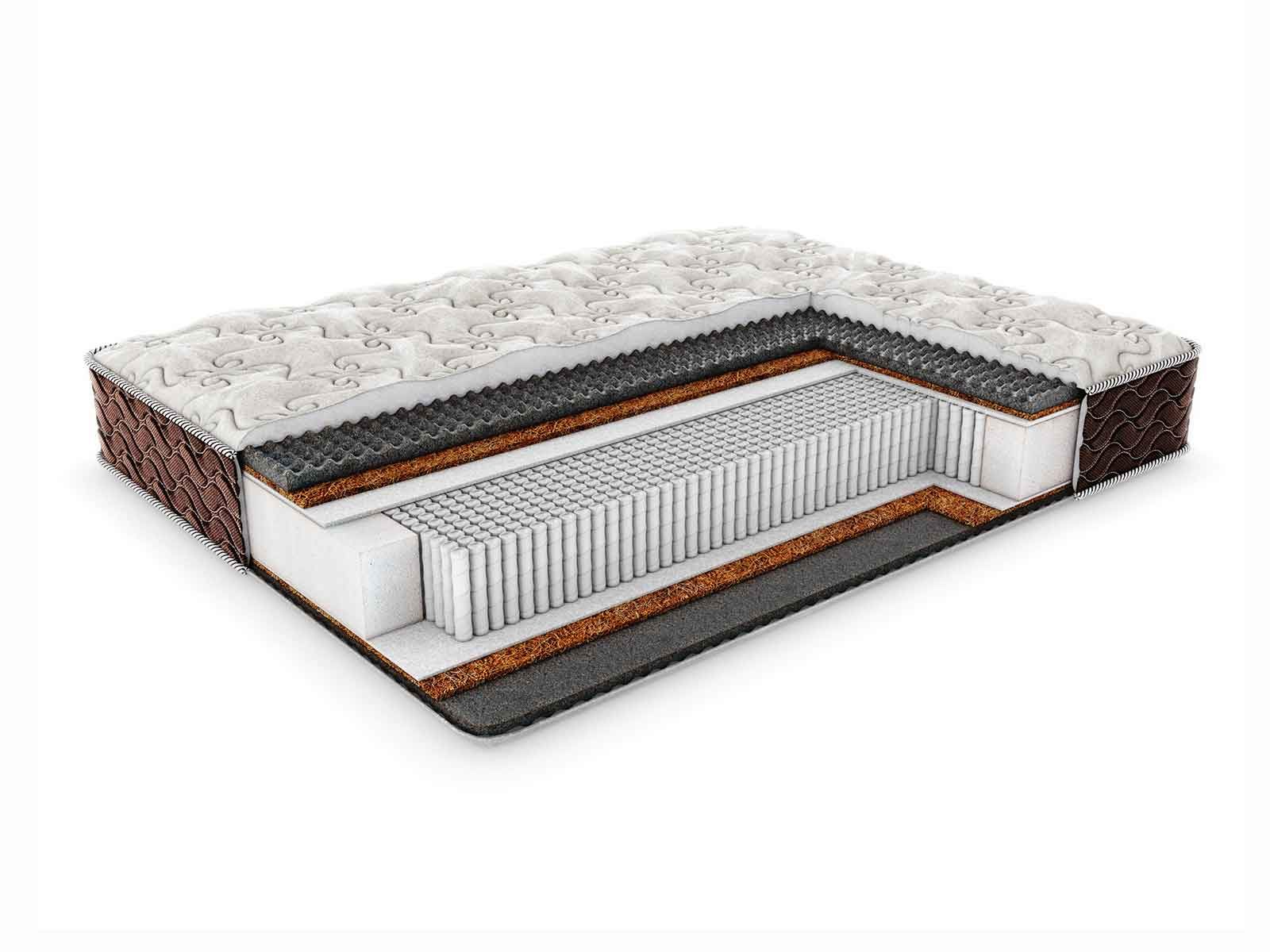 Сразу за пеной установлен кокосовый слой – специальный натуральный наполнитель с высокими характеристиками жёсткости. Материал передаёт поверхностям правильную ортопедическую поддержку, а также уплотняет спальное место.