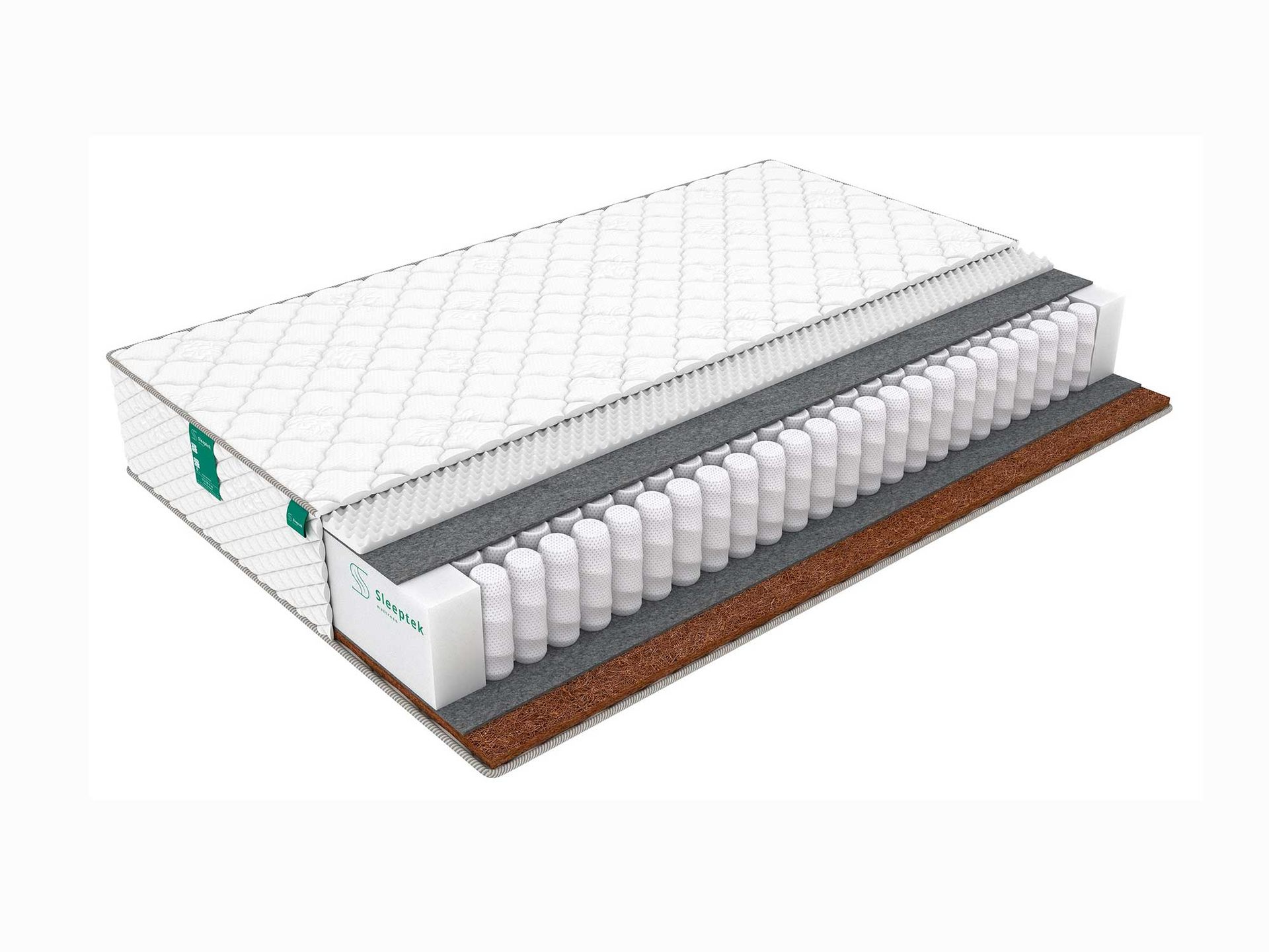 Пружинный матрас Sleeptek PremierBIG FoamCocos Massage имеет сразу два уровня жёсткости: средний и ниже среднего. В зависимости от того, какой стороной вы установите модель, то получите также либо массажный эффект, либо классическую плотную поверхность.