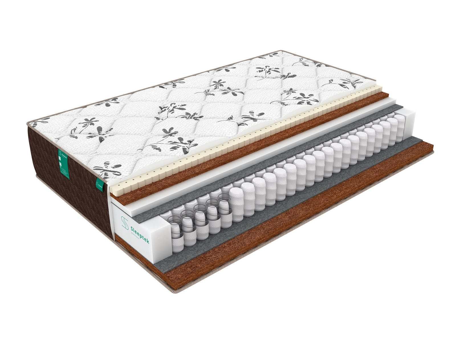 Современная модель Duplex Assorti Cocos на основе независимого пружинного блока Double Spring. Данный блок отличается от стандартных более высокой плотностью пружинок на квадратный метр, что достигается встраиванием в основную пружину еще одной, меньшего диаметра. Такая конструкция делает блок более прочным и значительно повышает его несущую способность. Работа пружин напрямую зависит от степени оказываемого на матрас давления. При небольшой нагрузке работают только основные пружины, чем выше становится нагрузка – тем больше внутренних пружин включается в работу. В итоге спящему обеспечивается оптимальная поддержка, точно отвечающая особенностям его сложения (весу и формам тела).