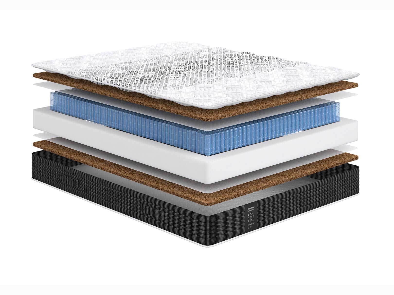 Матрас Gros Hard с независимым пружинным блоком MultiPocket, плотностью элементов более 1000 штук на спальное место. Благодаря высокой плотности пружин он обеспечивает качественную поддержку позвоночника, выдерживает большие нагрузки и равномерно распределяет вес по всей горизонтальной поверхности матраса. Кокосовая койра с обеих сторон обеспечивает максимальный ортопедический эффект благодаря повышенной жесткости.