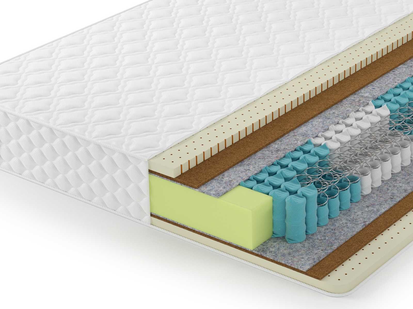 Данная модель полностью состоит из натуральных материалов. Жесткость модели придает латексированная кокосовая койра. Это антибактериальный и гипоаллергенный материал. Он очень прочный и имеет хороший влагообмен, а также не впитывает запахи.