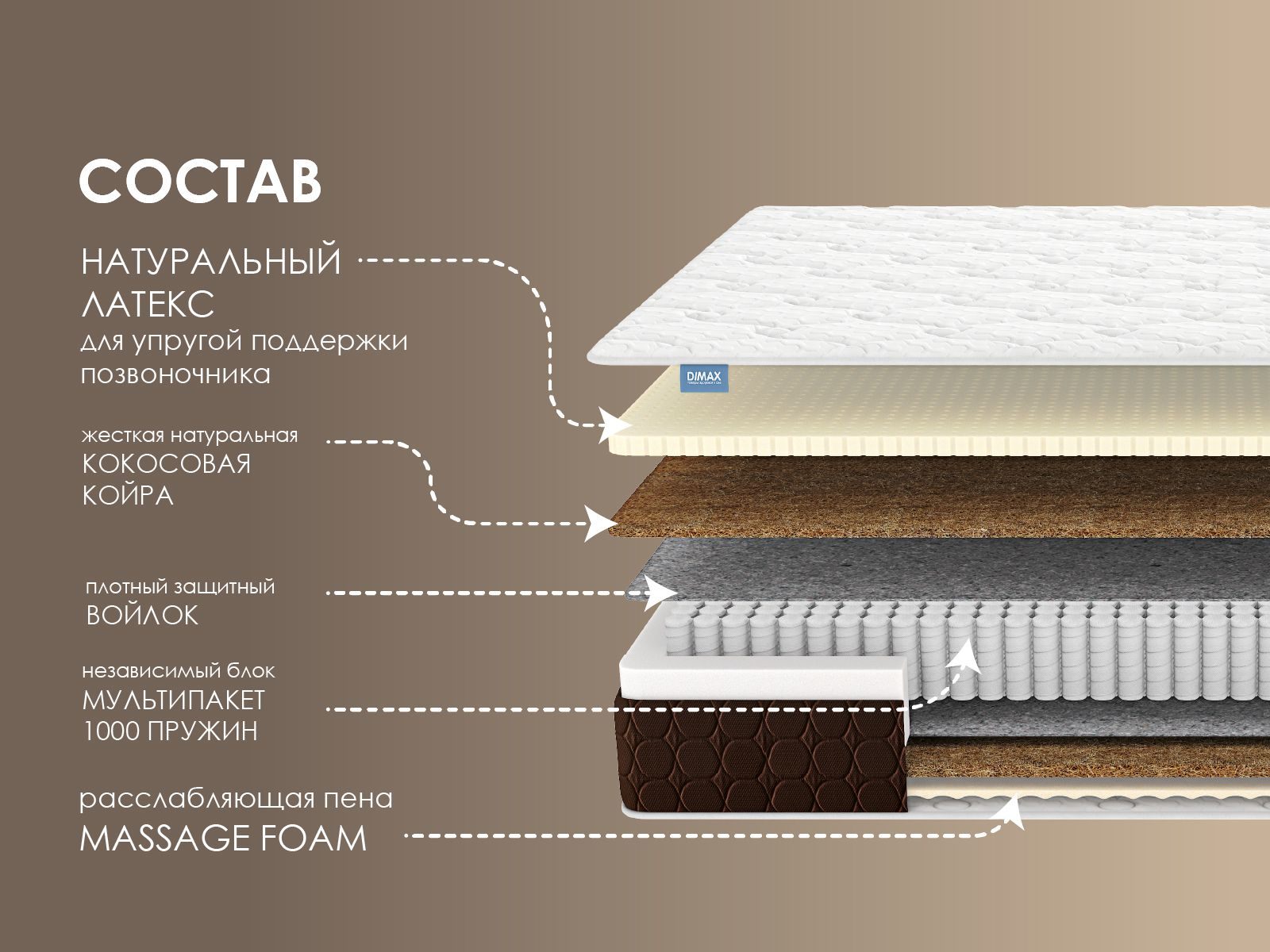 В одной модели органично сочетаются разные уровни жёсткости, массажный эффект и качественная ортопедическая поддержка.