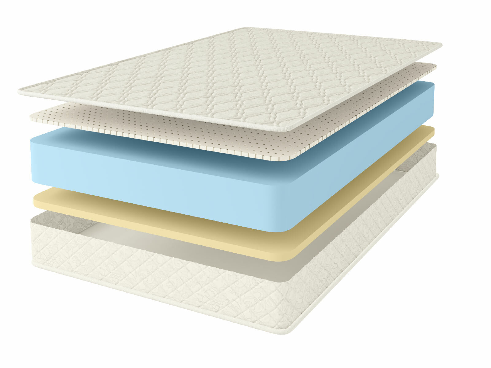 Беспружинный состав позволяет скручивать матрас на производстве для экономии места и удобства доставки. Модель поставляется в виде рулона, обёрнутого вакуумной заводской плёнкой.