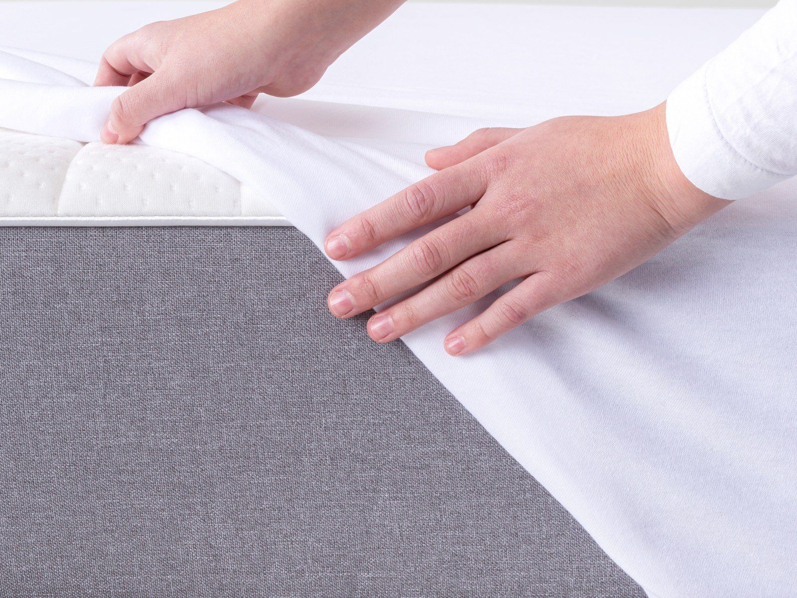 Крепление: контурная резинка по периметру (крепление по типу "чехол", резинка по периметру наматрасника, боковины матрасы закрыты). Благодаря высокой эластичности контурной резинки и материала возможна установка наматрасника на матрасы меньшего размера (например, наматрасник 90x200 устанавливается на матрас 90x190).