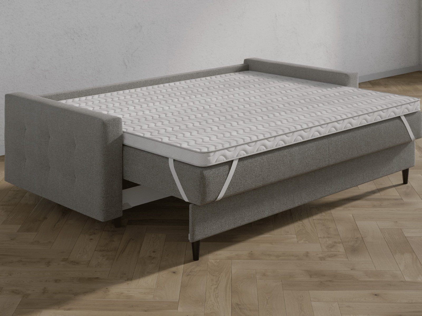 Топпер из современных материалов, может использоваться как дополнение к любому спальному месту. Комбинация материалов обеспечивает упругость и максимальный комфорт во время сна. Оптимально подобранные слои из современных пен разной плотности, жесткости, с разными свойствами, для здорового и комфортного сна. Подходит для аллергиков. Крепление осуществляется с помощью резинок по четырём углам.