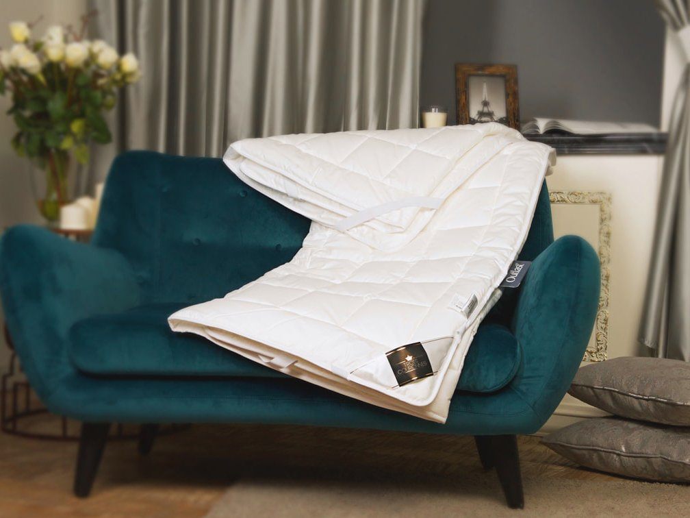 Белый стеганный квадратами наматрасник Clima Night Ingeo Topper с эффектом температурного контроля (Технология Outlast®), с резинками по углам.
