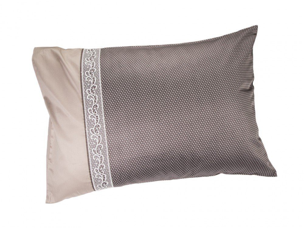 Комплект наволочек 50х70 см 2 шт. или 70х70 см 2 шт. из 100% Египетского длинноволокнистого хлопка. Очаровательный мелкий горох на серо-бежевом фоне очень гармонично сочетается с белоснежным кружевом. Наволочки закрываются на клапан. В комплекте 2 наволочки; упакованы в пакет из пвх с фирменным логотипом.