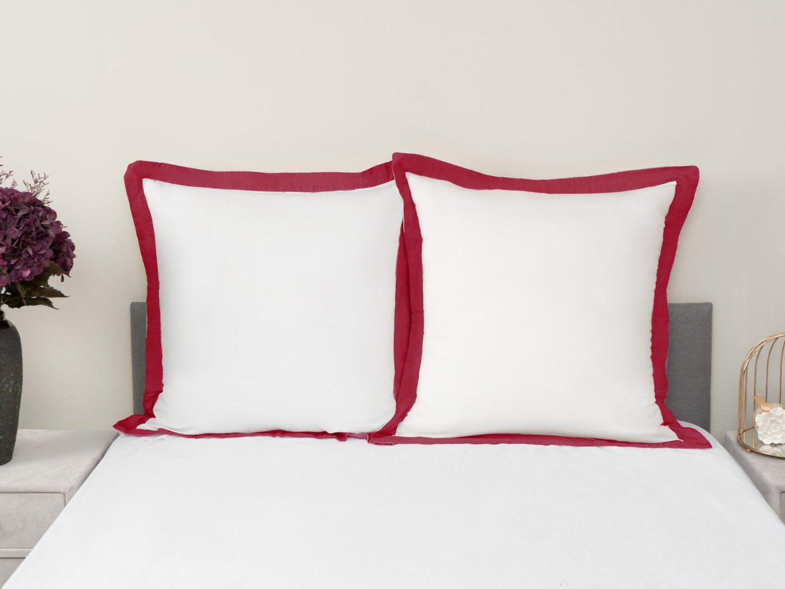 Особенность: белые наволочки декорированы контрастными цветными ушками 5 см с четырех сторон. Наволочки на запахе.