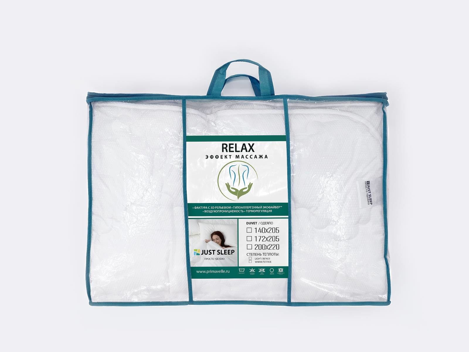 В качестве наполнителя выступает гипоаллергенный Экофайбертм . Между тонкими волокнами Экофайбертм остается воздушное пространство, что позволяет одеялу «дышать», а сама структура волокон способствует лучшему заполнению объема изделия. Наполнитель не сваливается в процессе эксплуатации и легко восстанавливает форму. Благодаря плотности 250 гр/м2 одеяло Relax подходит для холодного времени года.