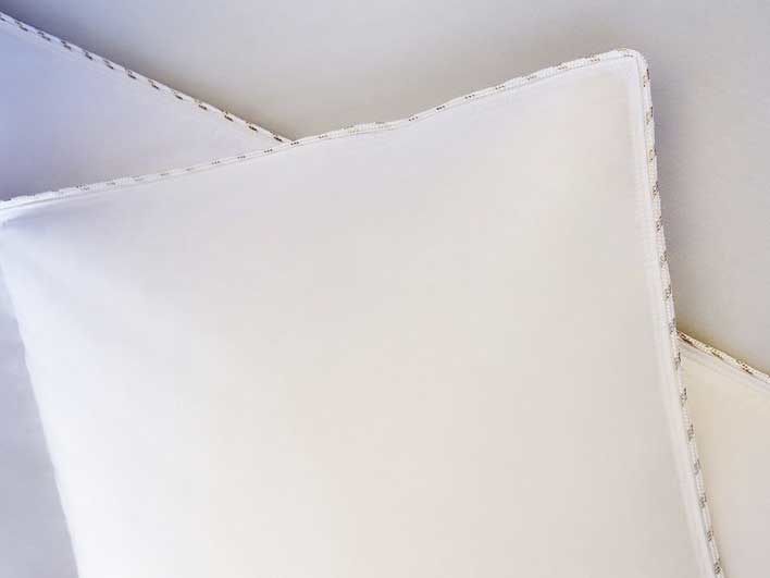Чехол: 100% длинноволокнистый ультра-тонкий египетский хлопок, батист, 325 TC, эффект персиковой кожи, обработка аргановым маслом. Дизайн: стеганное, квадраты; элегантный бело-золотой кант.