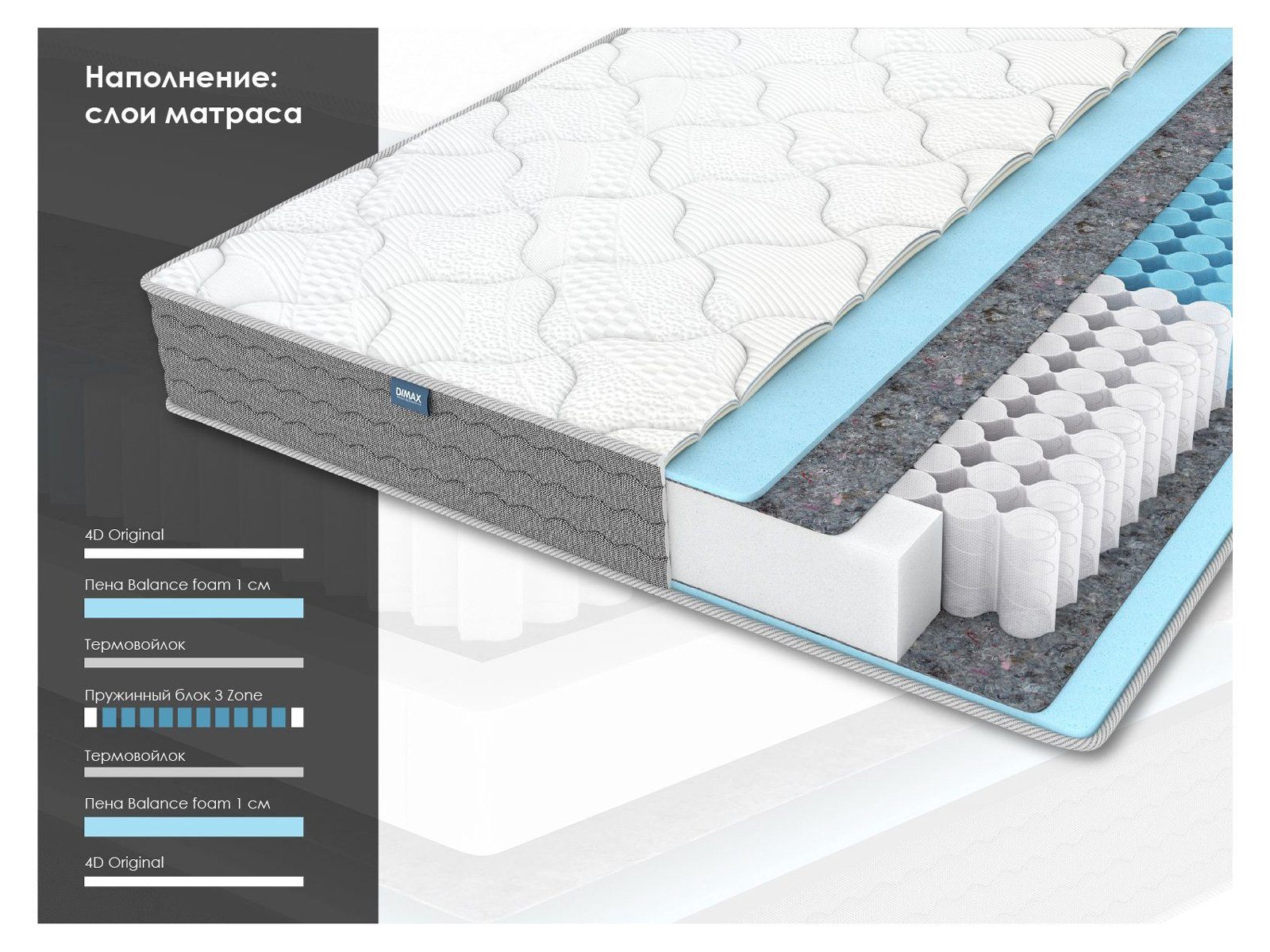 При покупке любого матраса Dimax получите подушку «Молли» в подарок, а за двуспальный – сразу две.