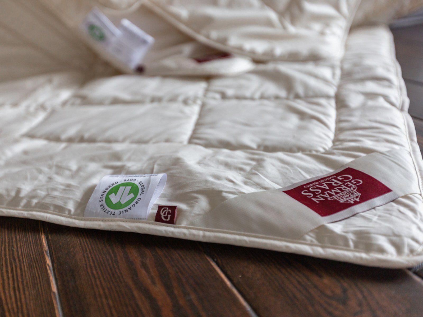 Основной наполнитель в коллекции - легкий и воздушный эко-наполнитель, созданный на основе эколо8гически чистого хлопка с добавлением волокон льна. Натуральный наполнитель обеспечивает великолепную циркуляцию воздуха и придает изделиям антибактериальный эффект; обладает антистатичными, гипоаллергенными и влагоотводящими свойствами. Тончайший батист имеет сертификат GOTS, свидетельствующий о том, что сырье для его создания выращено в контролируемом биологическом хозяйстве, без использования химических добавок и соответствует строгим экологическим критериям. Ткань дополнительно прошла финишную обработку SanProCare® Sensitive и отмечена знаком «Bramscher Tuch», что является безусловным знаком качества от специалистов из города Бра́мше в Германии. Стирка при температуре до 30С°.