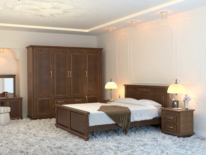Деревянная кровать Палермо производится из массива ясеня. Элементами декора этой модели являются резьбовые элементы из натурального дерева, выполненные на высокотехнологичном оборудовании. Фундаментальность линий современной классики в сочетании с безупречным качеством изготовления и покраски — вот, что позволяет этой модели кровати, уверенно занимать лидирующие позиции на российском рынке в премиальном сегменте мебели. Кровать изготавливается с высоким изножьем.