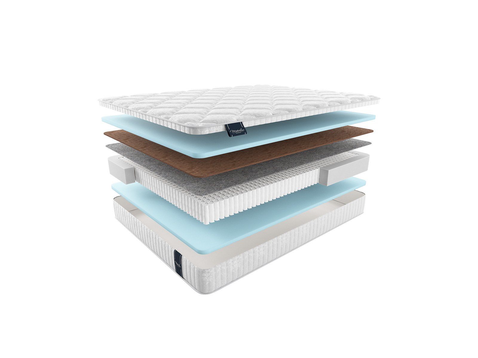 Матрас укомплектован независимым пружинным блоком «Мультипакет» (1040 пружин на спальное место) с уменьшенным диаметром пружин для большей жесткости. А для дополнительного комфорта матрас усилен каркасом 10 см по периметру, что дает ряд дополнительных преимуществ: он прекрасно держит вес, хорошо восстанавливается после нагрузки, а срок его службы становится больше.