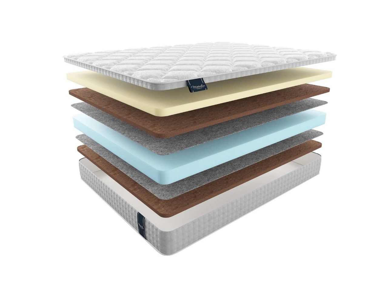 У каждой из двух поверхностей установлен разный вид наполнителей. С одной стороны лежит кокосовая койра, а с другой – Мемори фоам. Такой подход позволяет добиться умеренной мягкости и выраженной жёсткости у матраса.