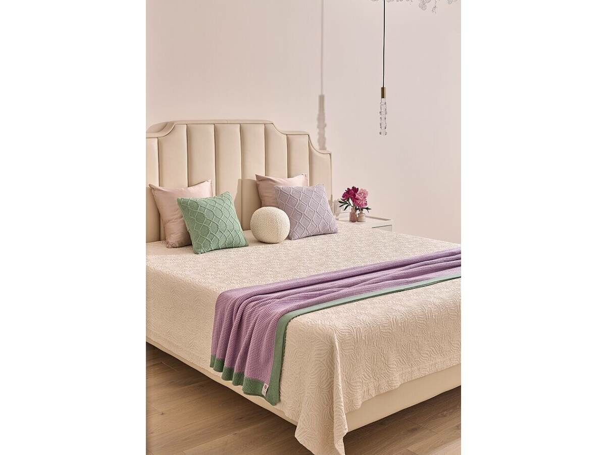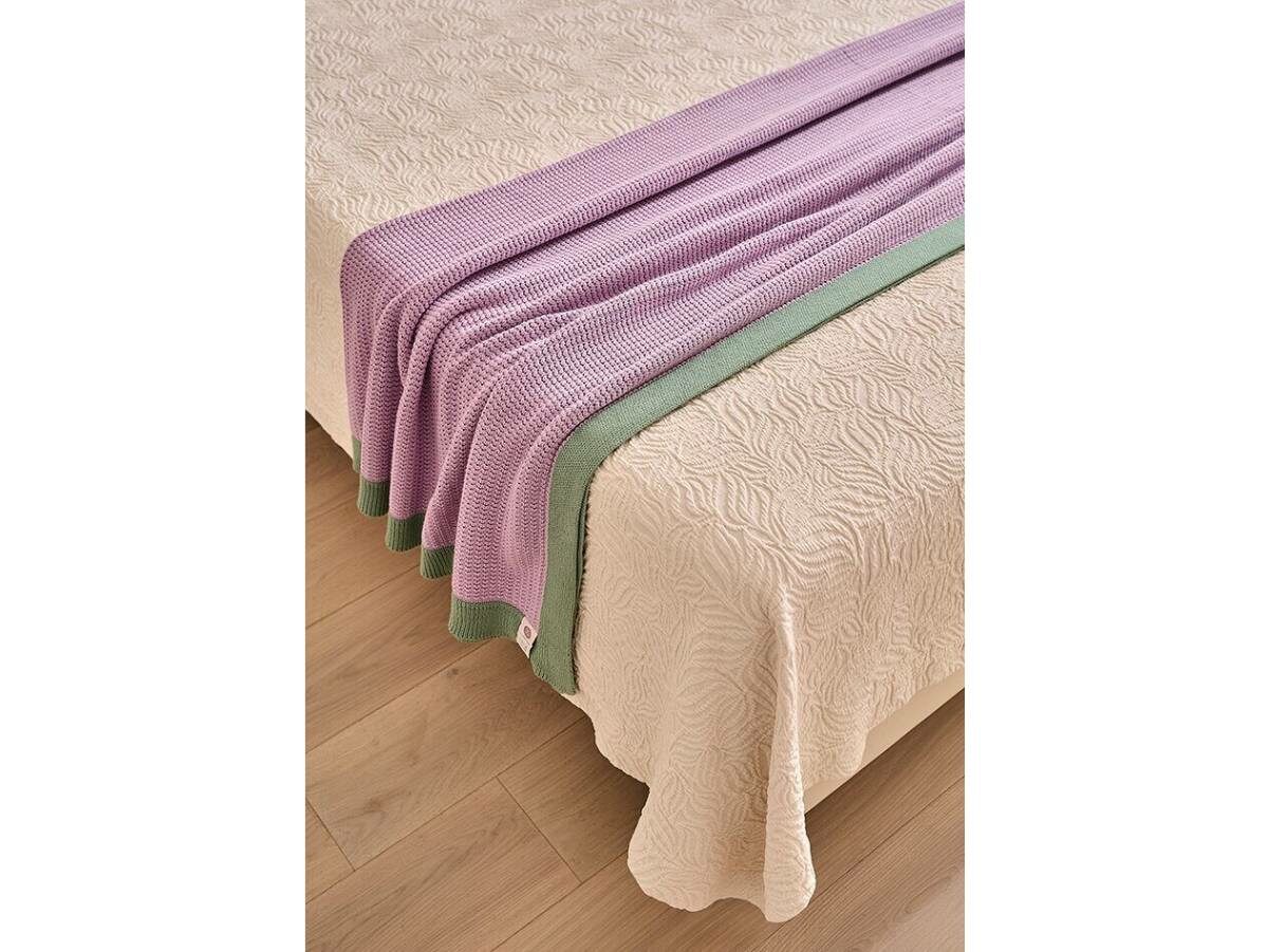 Плед имеет красивую плотную вязку, с отделочным кантом 5см.