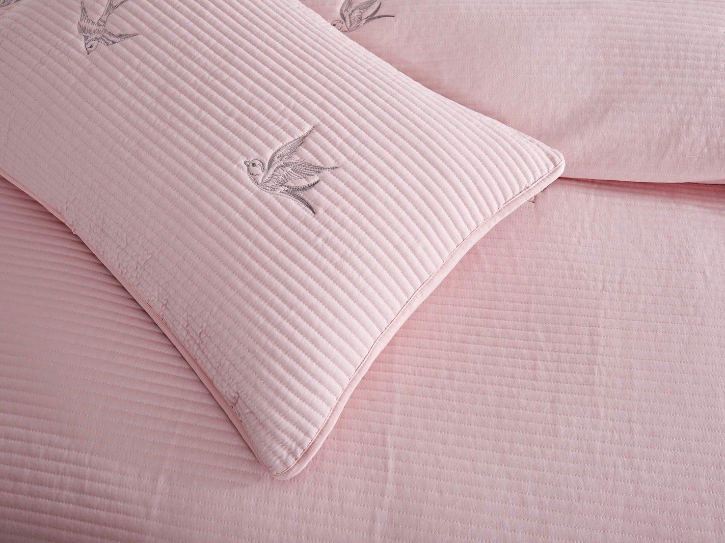 Покрывала этой коллекции выполнены из смеси хлопка и вискозы, используются только натуральные красители в пастельных тонах, тщательно продуманный рисунок напоминает о летнем небе и бескрайних полях южной Франции. Розовые или пудровые оттенки помогут создать романтичную атмосферу, более холодные хорошо подойдут для оформления мужской спальни.