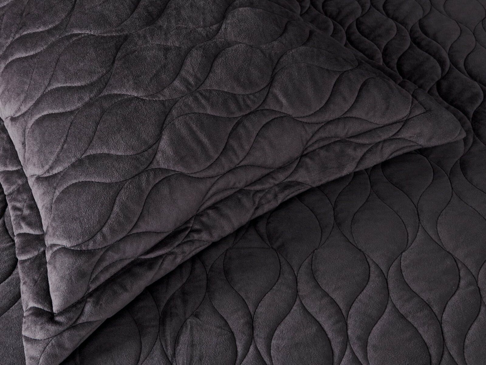 Покрывала и наволочки изготовлены из велюра высокой плотности - приятной на ощупь бархатистой ткани с коротким ворсом. Пошив покрывала с кантом, наволочки с ушками 5 см.