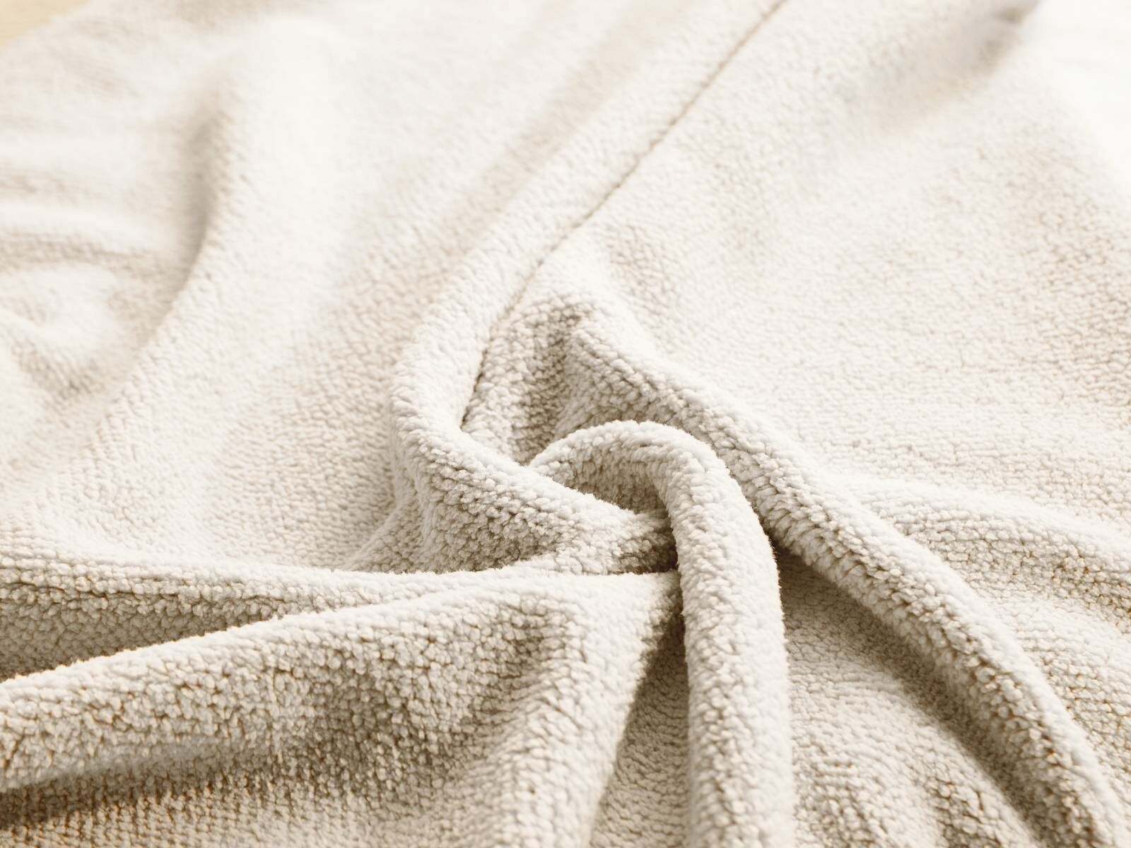 Изделие выполнено из 100% вискозы, такой материал хорошо впитывает влагу, сохраняет тепло и дарит чувство комфорта. Края изделия обработаны декоративной стежкой.