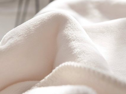 Изделие выполнено из 100% вискозы, такой материал хорошо впитывает влагу, сохраняет тепло и дарит чувство комфорта. Края изделия обработаны декоративной стежкой.