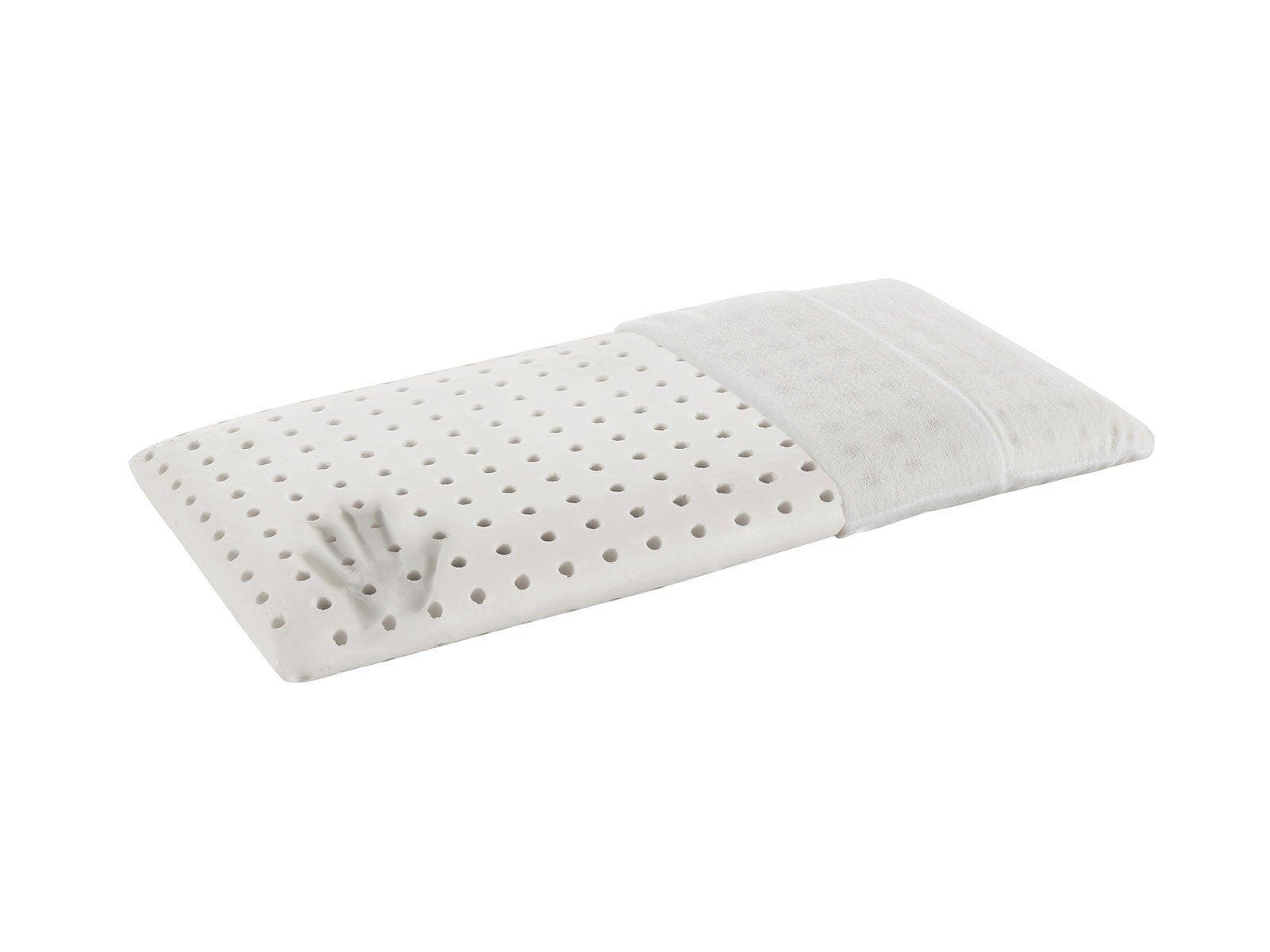 Подушка изготавливается в несъёмном чехле из 100% хлопка. Ткань гипоаллергена, не электризуется, но при этом свободно аэрируется и впитывает лишнюю влагу.