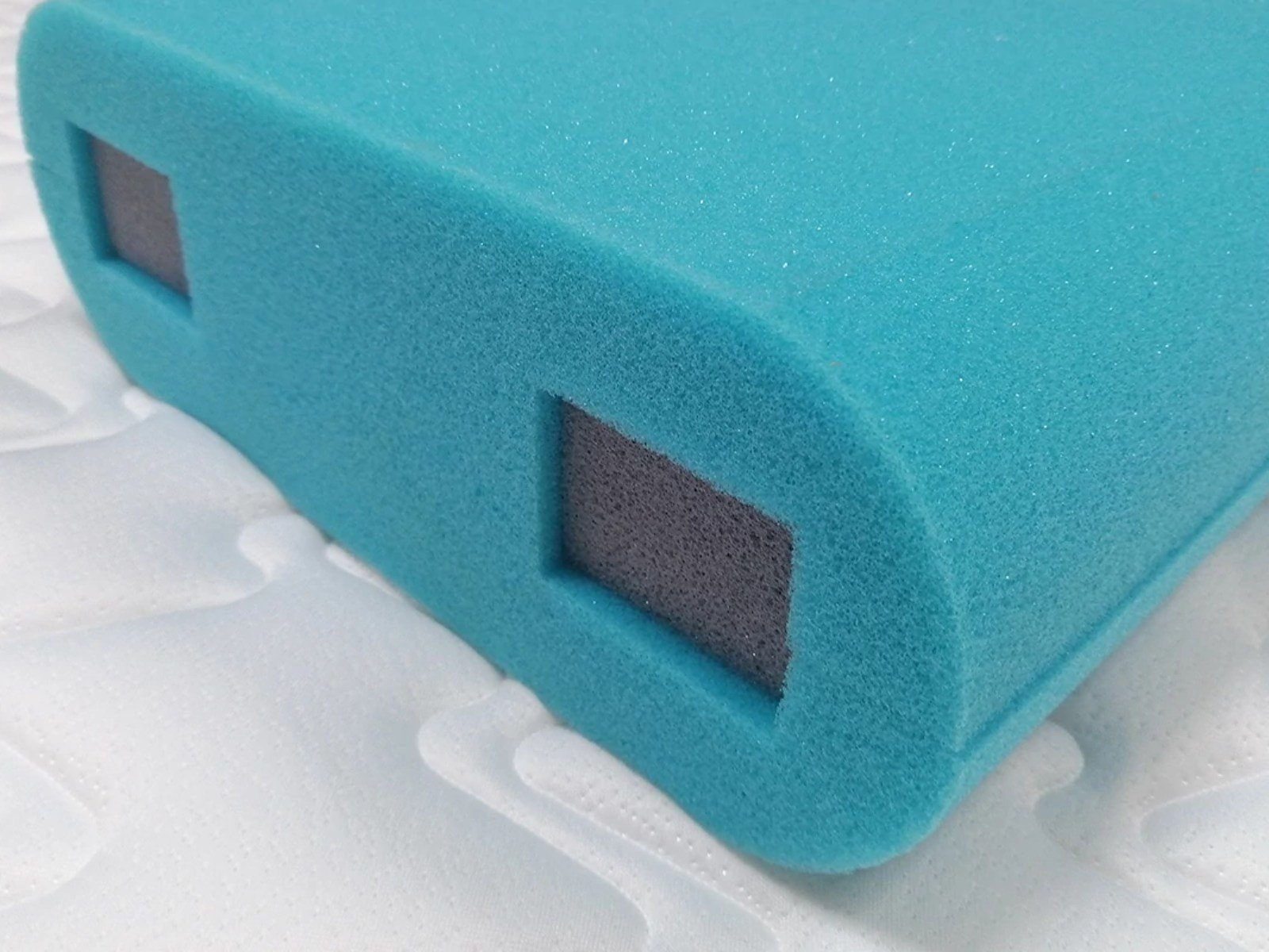 Подушка выполнена из экологически чистой пены Hyper Soft, обладающей уникальным эффектом "релакса в воде/утопания в песке" - золотая середина между натуральным латексом и пеной memory (с памятью формы). Для придания лучшей поддержки шейного отдела и более равномерного распределения оказываемого давления, подушка усилена внутренними прямоугольными вставками из более жесткой пены с угольной пропиткой.