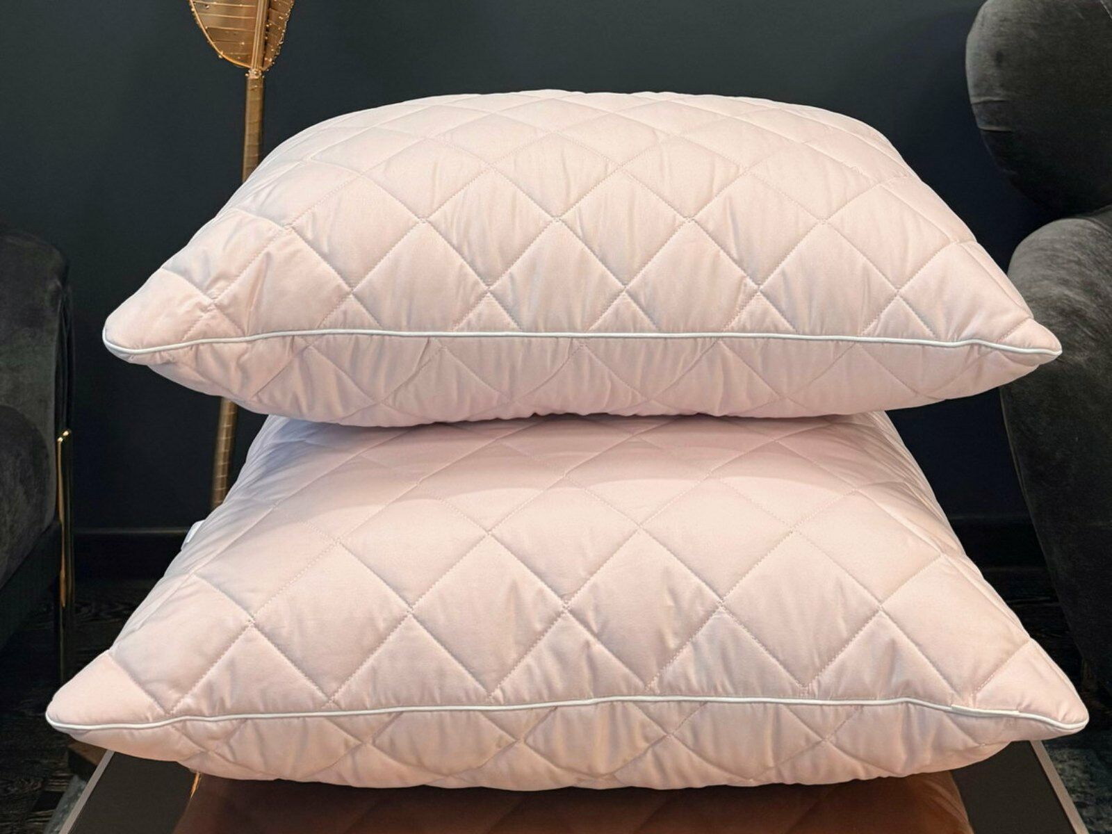Наполнителем для подушек служит искусственный лебяжий пух, он обладает отличной формоустойчивостью, не сбивается в комки и прост в уходе. Особенность данной модели - уникальная стежка «ромбы», которая хорошо переносит ежедневную эксплуатацию, без потери своих качеств.