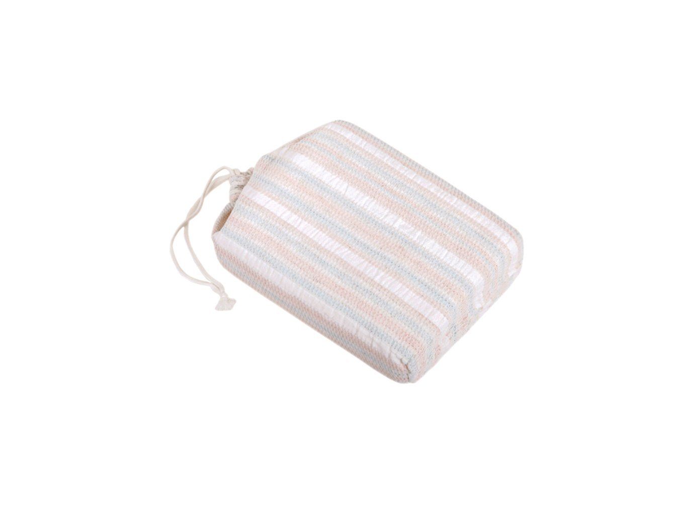 Легкое покрывало "CANDY" изготовлено из хлопковой рогожки. Этот натуральный материал имеет 'шахматный' рисунок нитей, обусловленный особенностями плетения. Покрывало прочное, износостойкое, обладает отчетливой фактурой. Сочетание трех цветов: экрю/розовый/голубой выглядит нежно и стильно. Покрывало упаковано в мешочек на завязках, поэтому его удобно взять с собой в поездку.