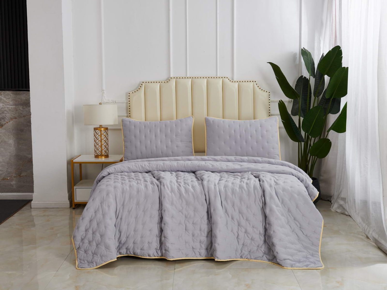 Двусторонние стеганные покрывала Броуди легкие и прочные. В комплект входят покрывало и одна либо две наволочки (50х70 см) из аналогичного материала в зависимости от размера. При желании покрывало можно использовать как легкое одеяло.