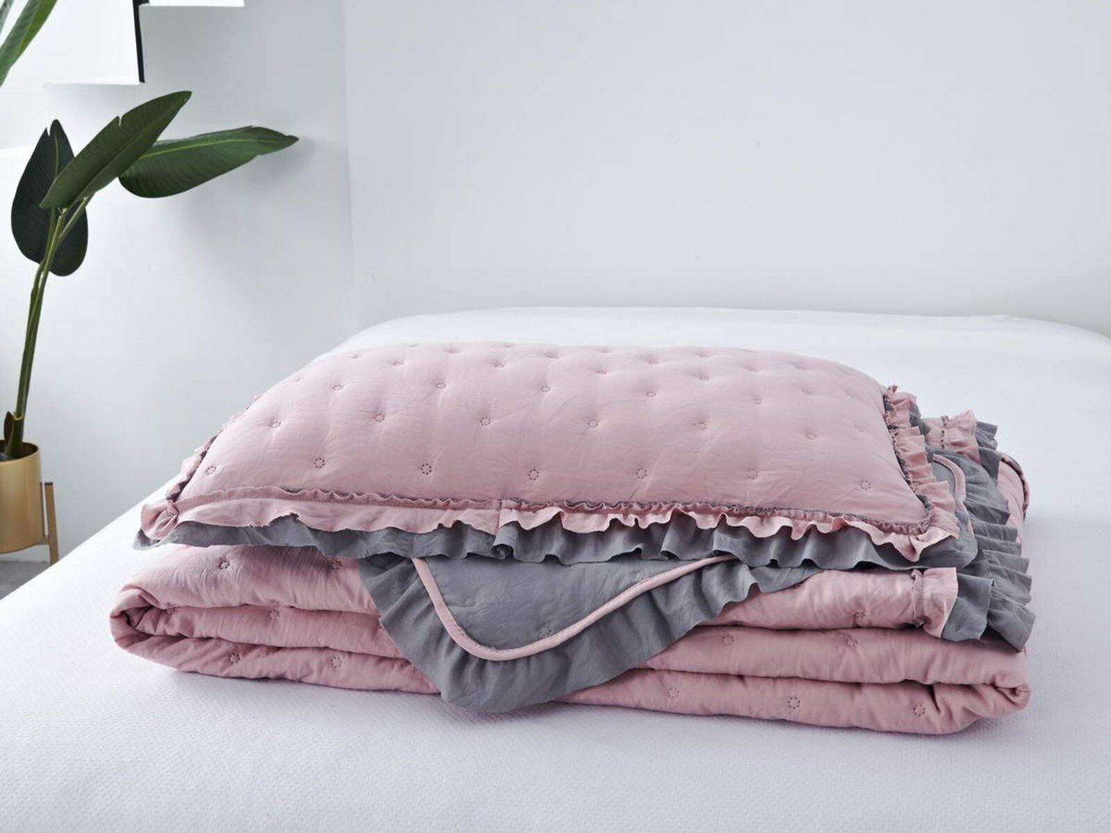 Покрывала выполнены в десяти оттенках, они подойдут для различных интерьеров, объединяет коллекцию потрясающее качество и приятный внешний вид. Изделия декорированы рюшами по краю, что подчеркивает из красоту и изысканность.