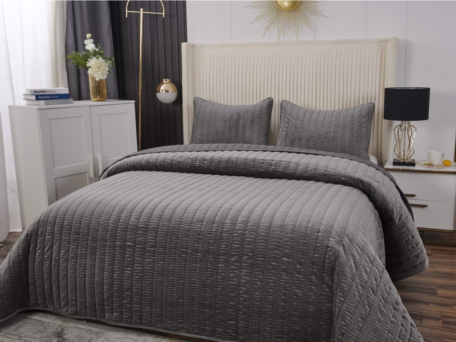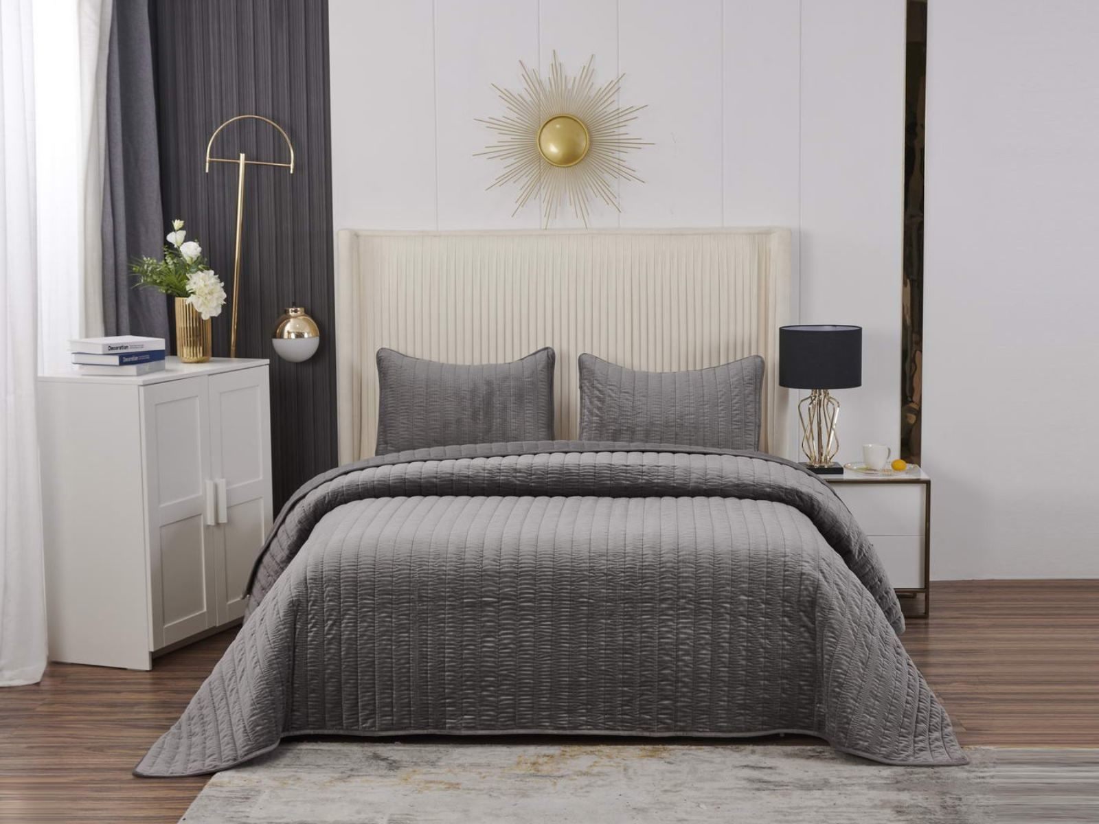 Величественный вид, мягкость материала, королевская роскошь – всё это идеально описывает новое покрывало Фердинанд. Оно выполнено из велюра на основе полиэстера и представлено в оттенках: чайная роза, молоко, бежевый, кофе, стоун, серый и мокко.