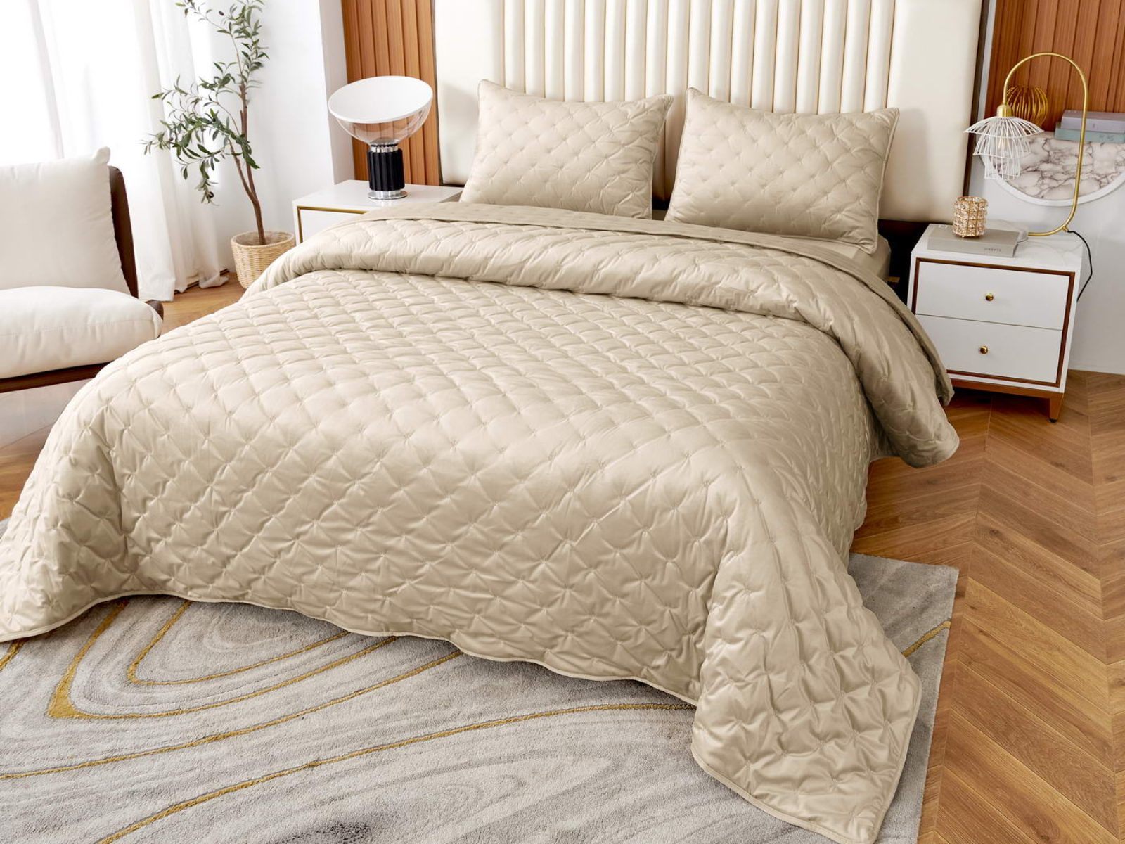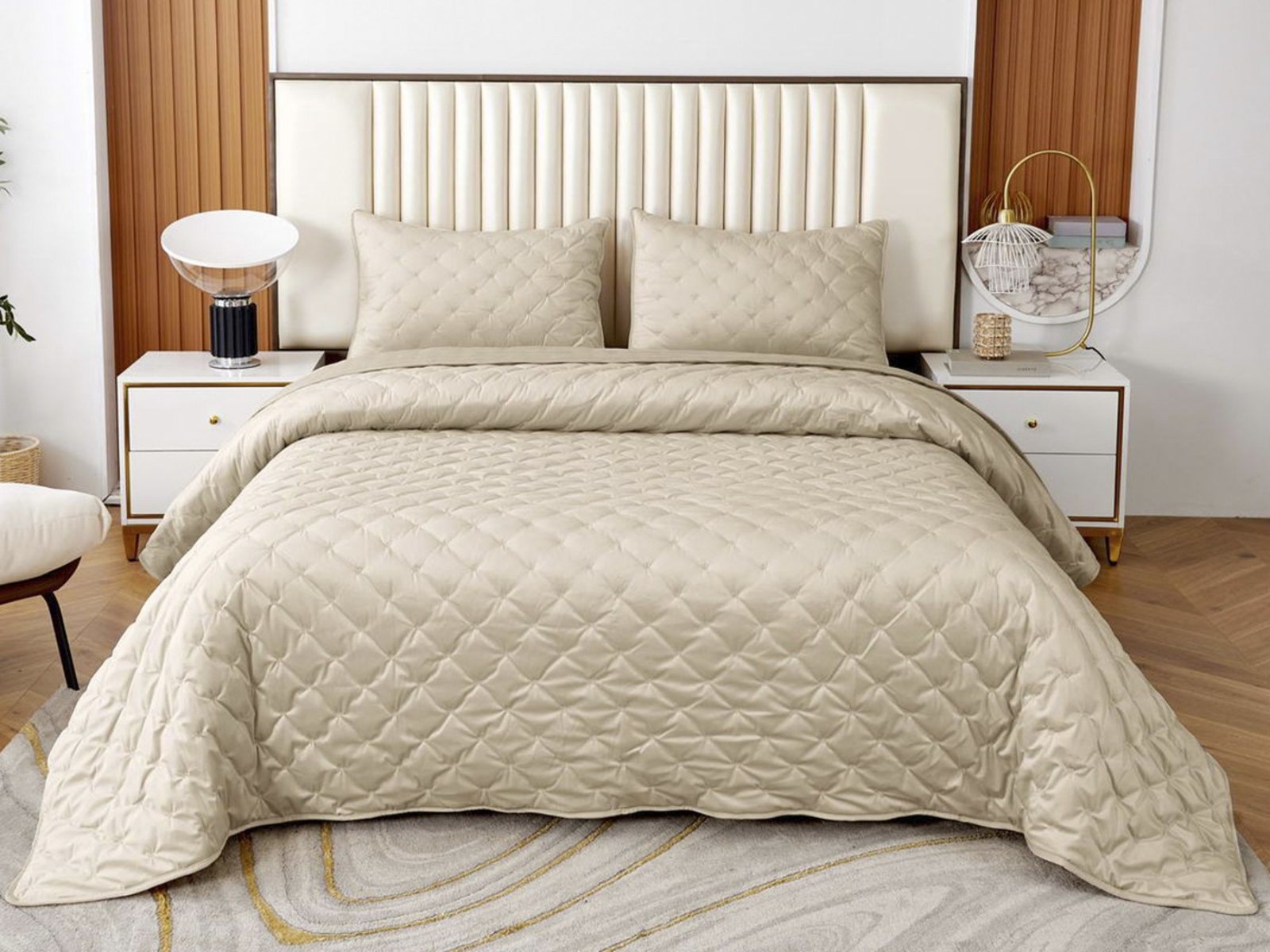 В комплект входят покрывало и одна либо две наволочки (50х70 см) из аналогичного материала в зависимости от размера.