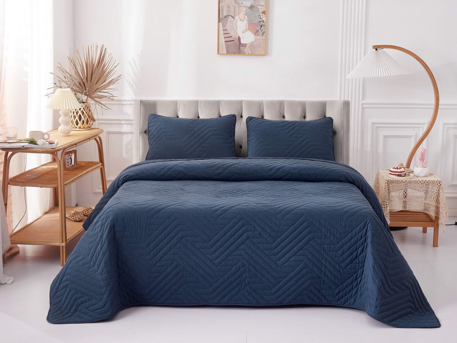 В комплект входят покрывало и одна либо две наволочки (50х70 см) из аналогичного материала в зависимости от размера. Изделия гипоаллергенны, они подходят детям и людям с чувствительной кожей. Покрывала и наволочки не линяют, сохраняют форму и цвет при многочисленных стирках и не выгорают на солнце. Изделия можно стирать в щадящем режиме при температуре не выше 30 градусов.