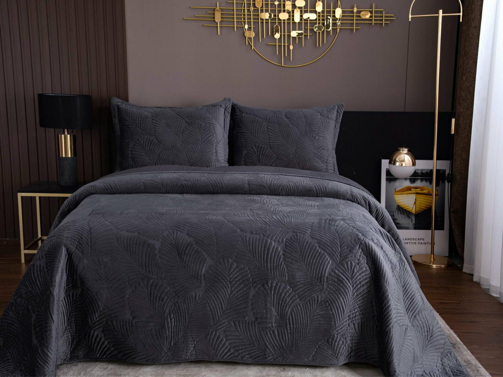 На создание велюрового покрывала Ноэль наших дизайнеров вдохновила ночь в середине лета, когда на раскаленную от жары землю спускается долгожданная прохлада. Роскошная вышивка в виде пальмовых листьев будет напоминать о тени, которую отбрасывают деревья.