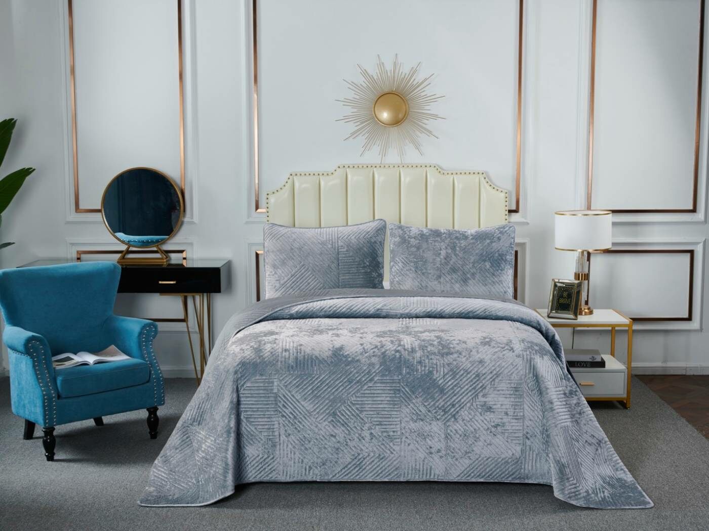 Покрывало украшает лаконичный геометрический орнамент. Геометрия всегда была и остаётся актуальной классикой. Конфигурация различных фигур, углов и линий позволяет им органично вписаться в самые разнообразные интерьерные стили.